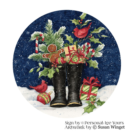 Susan Winget Exclusive Sign * Christmas Boots * Round * Lightweight Metal