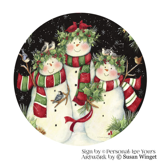 Susan Winget Exclusive Sign * Happy Snowman Family * Round * Lightweight Metal