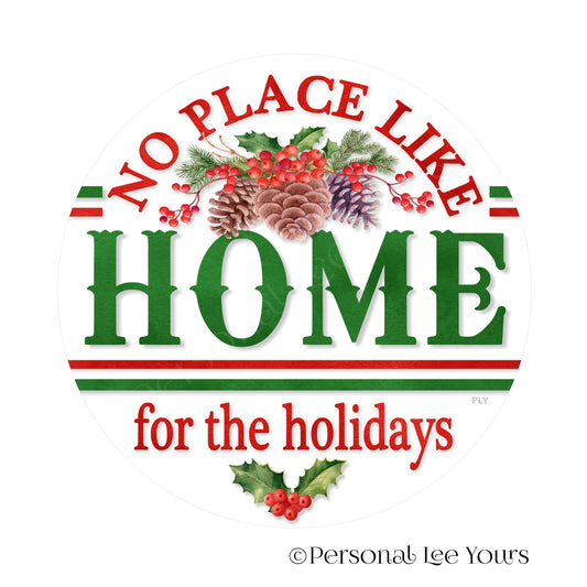Christmas Wreath Sign * No Place Like Home For The Holidays * Round * Lightweight Metal