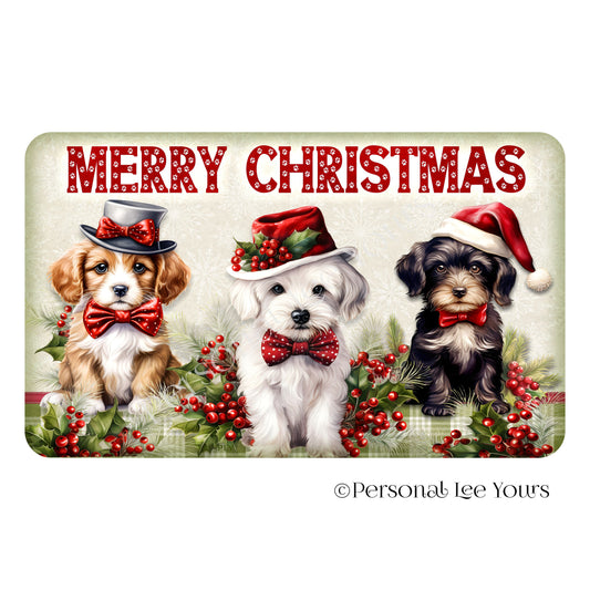 Holiday Wreath Sign * Merry Christmas Puppies * Horizontal * 4 Sizes * Lightweight Metal