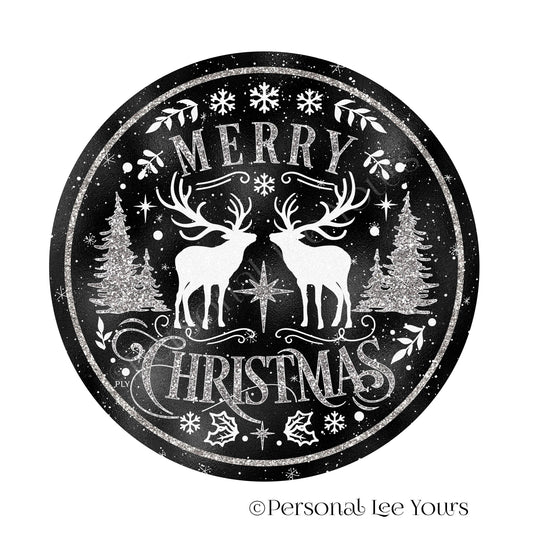 Holiday Wreath Sign * Merry Christmas Reindeers * Black * Round * Lightweight Metal