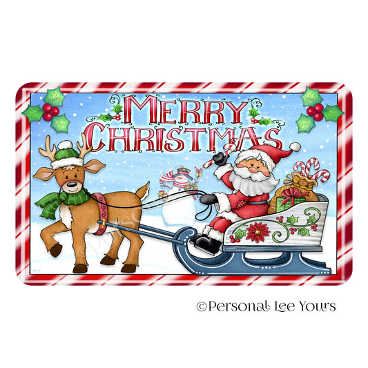 Holiday Wreath Sign * Merry Christmas Santa In Sleigh * 4 Sizes * Lightweight Metal