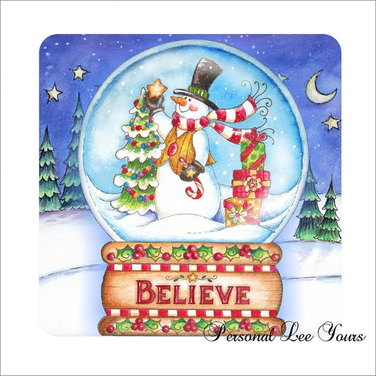 Christmas Wreath Sign * Believe Snow Globe * Snowman * 3 Sizes * Lightweight Metal