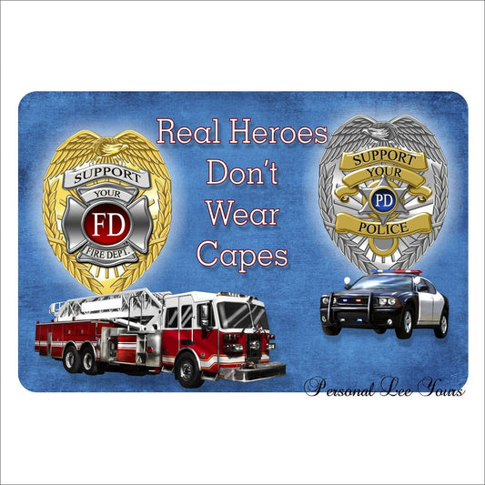 Metal Wreath Signs * Fireman * Police * Real Heroes Don't Wear Capes * 3 Sizes * Lightweight
