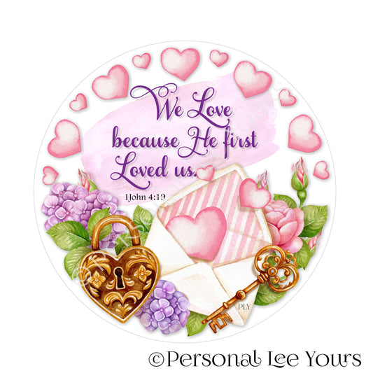 Christian Wreath Sign * We Love Because He First Loved Us. 1 John 4:19 * Round * Lightweight