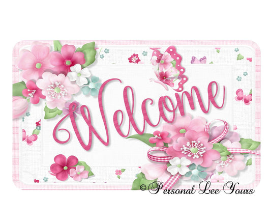 Wreath Sign * A Pink Welcome * Lightweight *3 Sizes * Lightweight Metal