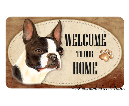 Metal Wreath Sign * Welcome * Boston Terrier * 3 Sizes * Lightweight