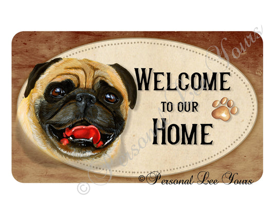 Pet Wreath Sign * Welcome * Pug * 3 Sizes * Lightweight Metal