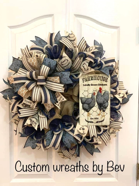 Metal Wreath Sign * Farmhouse Chickens * 3 Sizes * Lightweight