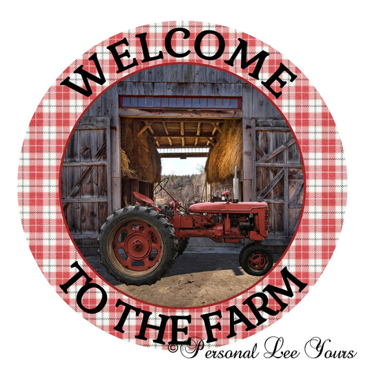 Metal Wreath Sign * Welcome To The Farm * Red Tractor * Round * Lightweight