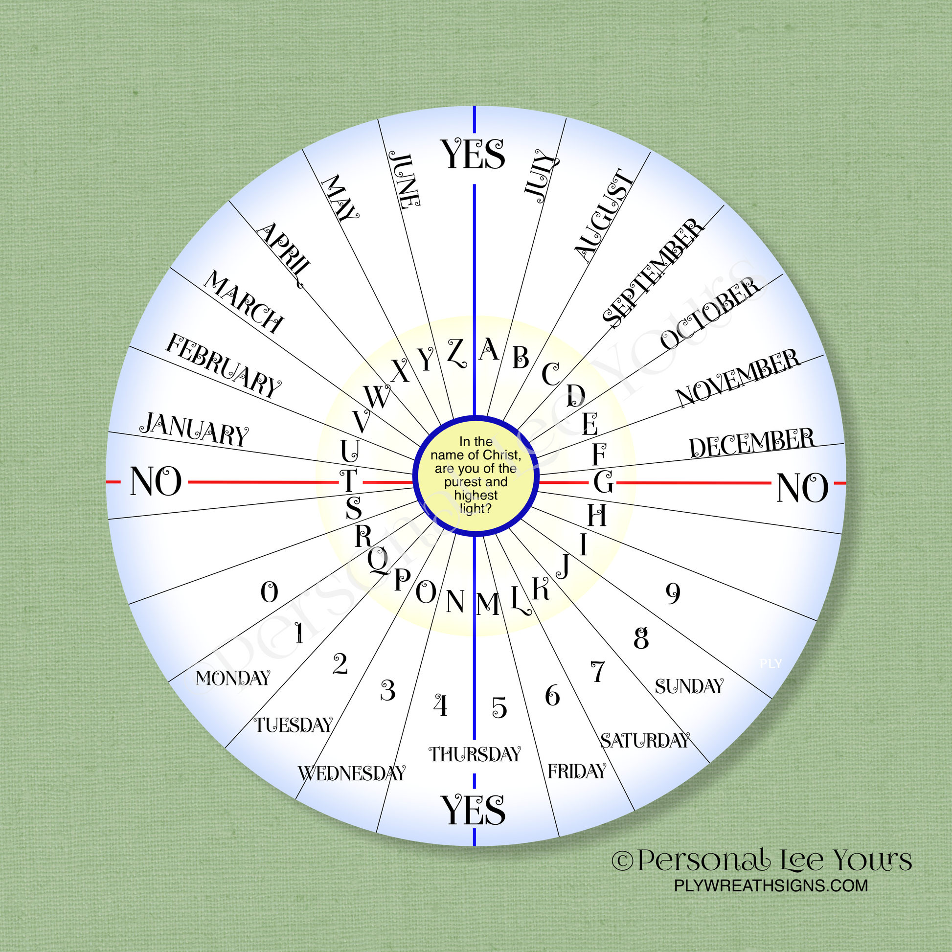 Center reads: In the name of Christ are you from the highest and purest light? (ask 3 times and you are always told the truth.)
