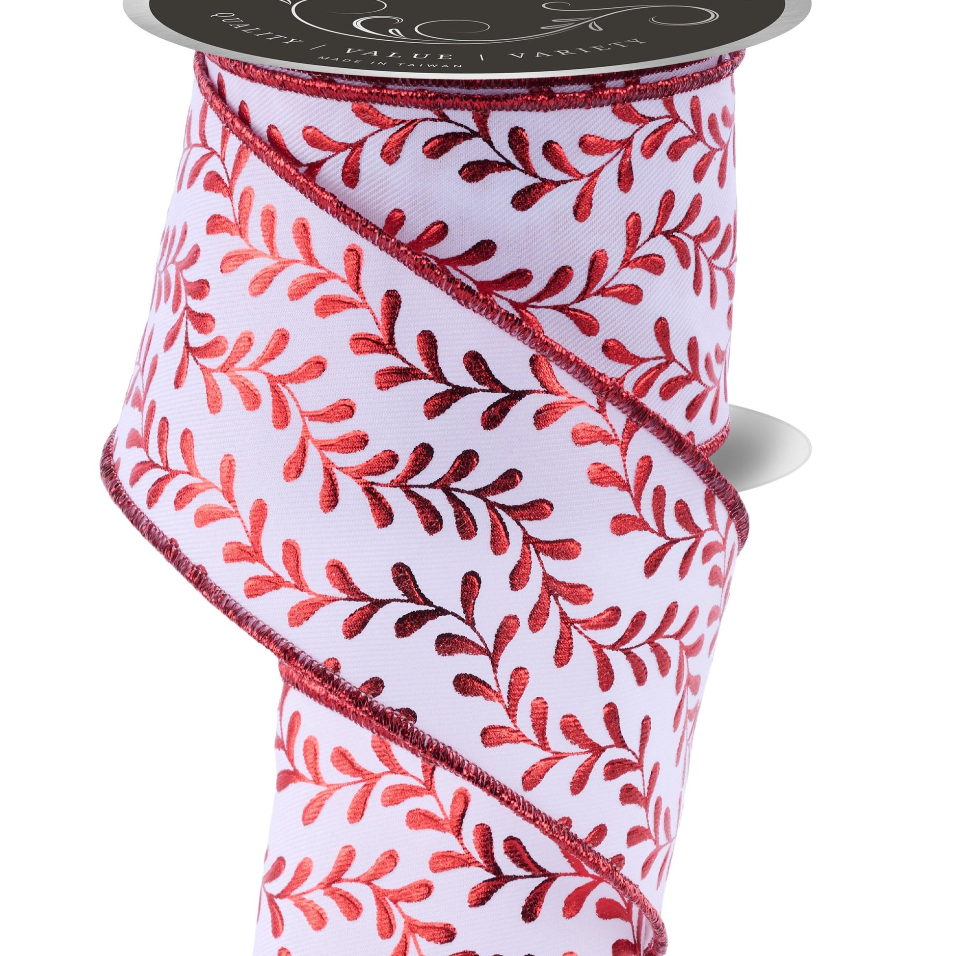 Brilliance Wired Ribbon * Foil Leaf Garland * White, Red * 2.5" x 10 Yards Canvas * LS302067