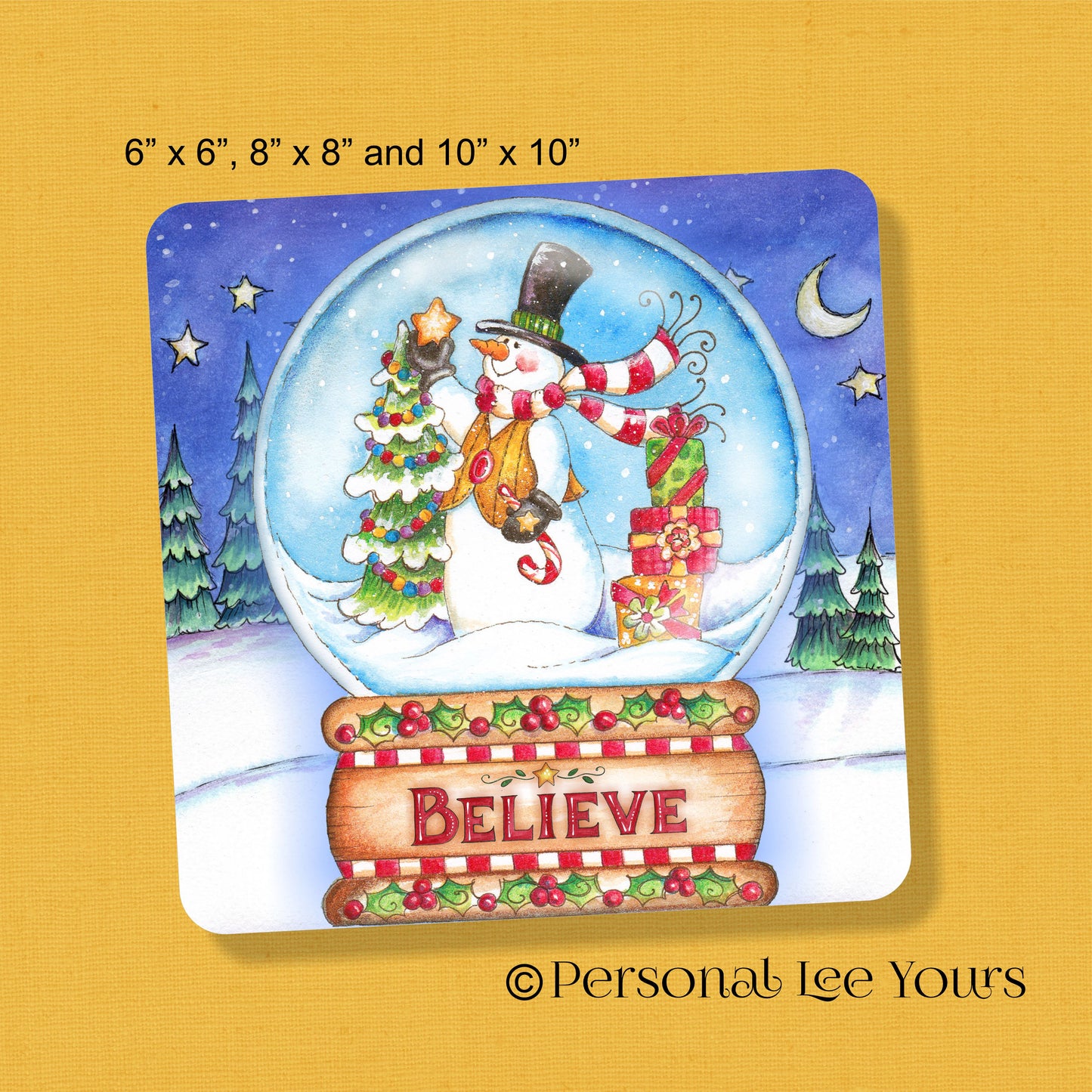 Christmas Wreath Sign * Believe Snow Globe * Snowman * 3 Sizes * Lightweight Metal