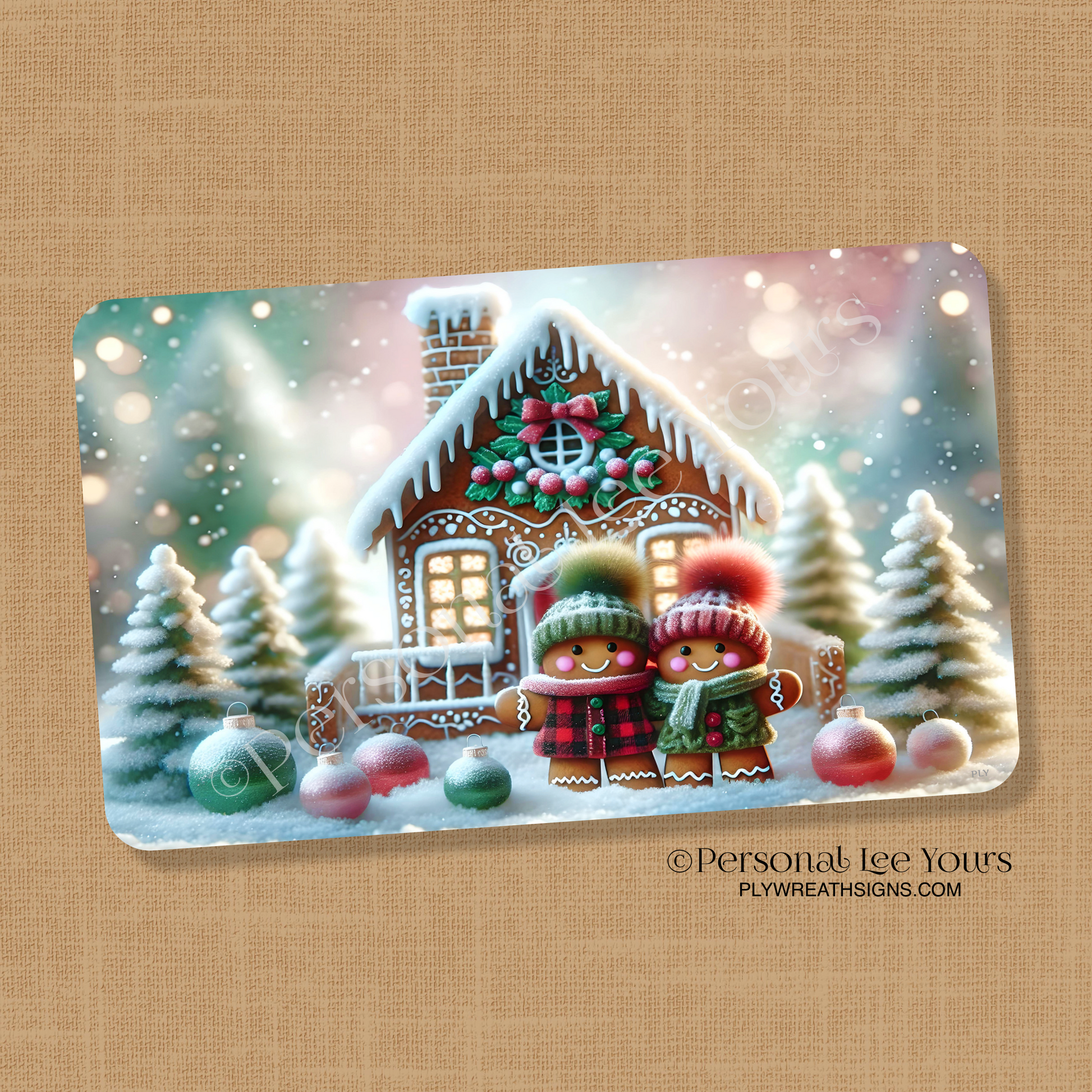 Christmas Wreath Sign * Red and Green Gingerbread * Horizontal * 3 Sizes * Lightweight Metal