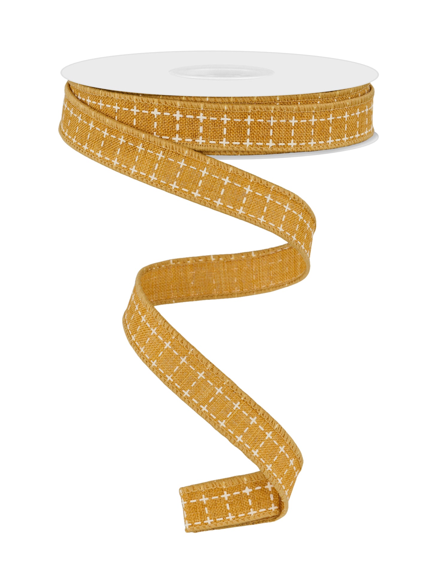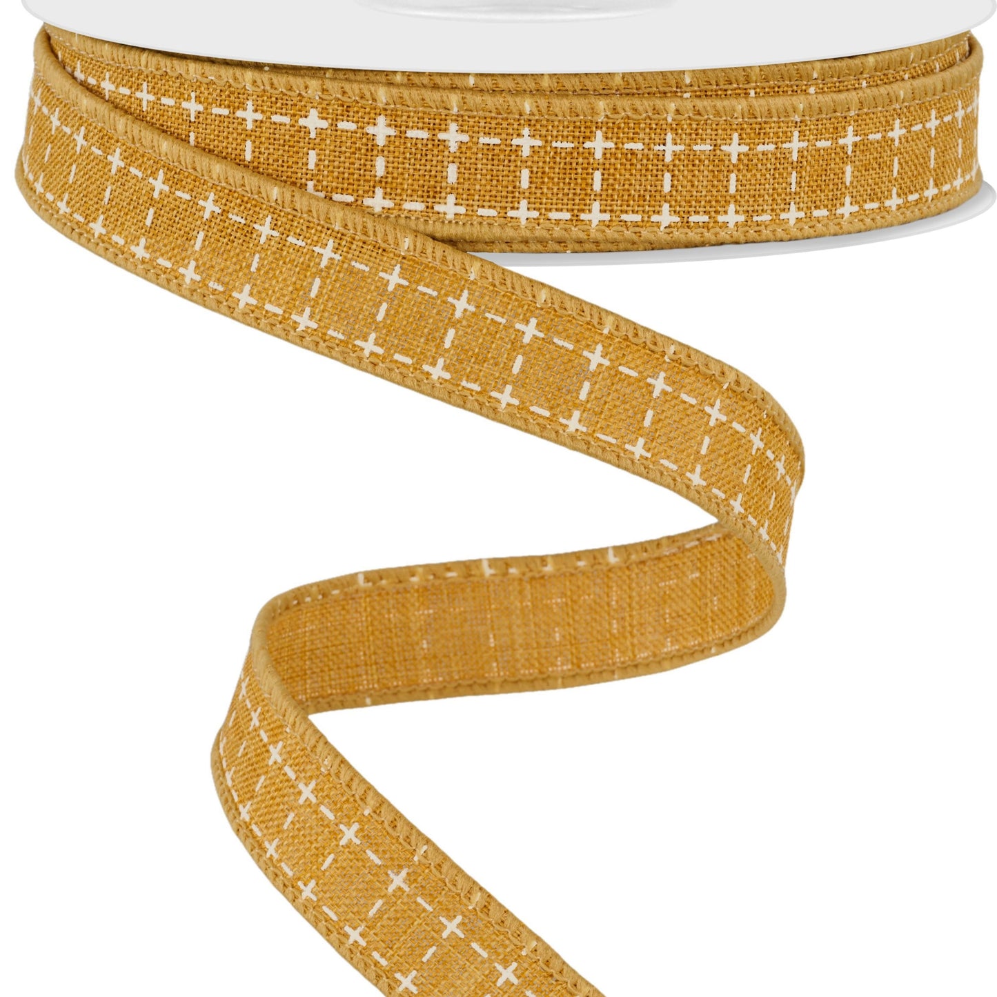Wired Ribbon * Raised Stitch * Dark Mustard and Cream Canvas * 5/8" x 10 Yards * RGF10915W