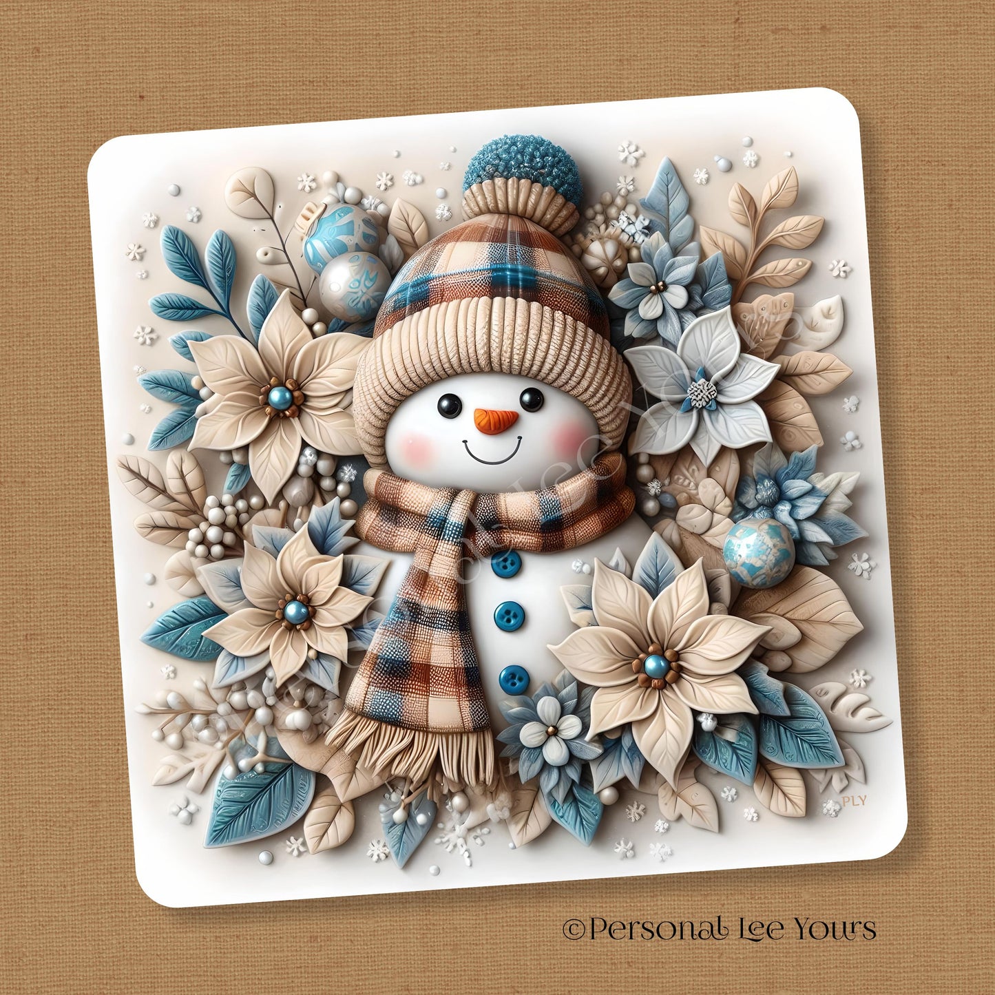 Holiday/Winter Wreath Sign * Snowman Blue and Beige * Square * 3 Sizes * Lightweight Metal