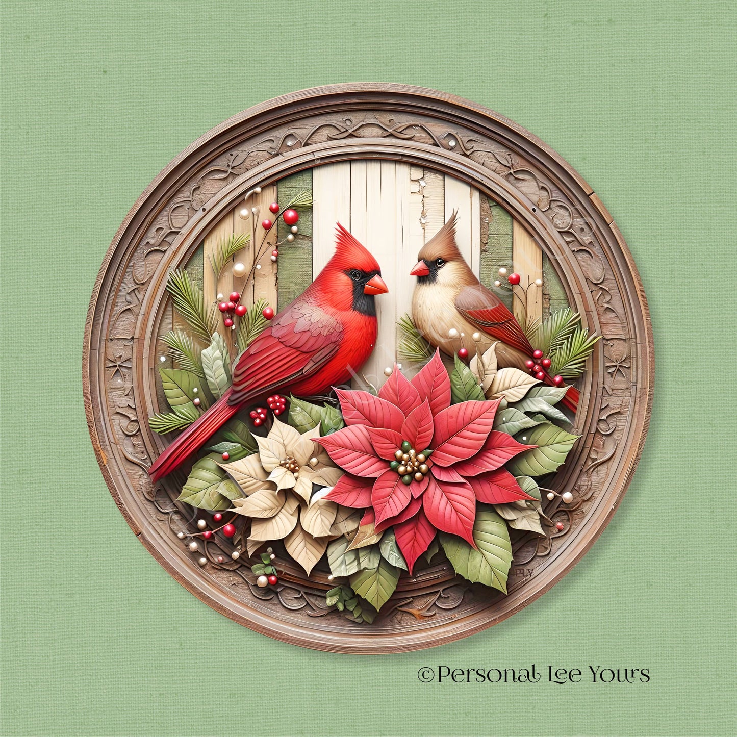 Holiday Wreath Sign * Cardinal Pair * Round * Lightweight Metal