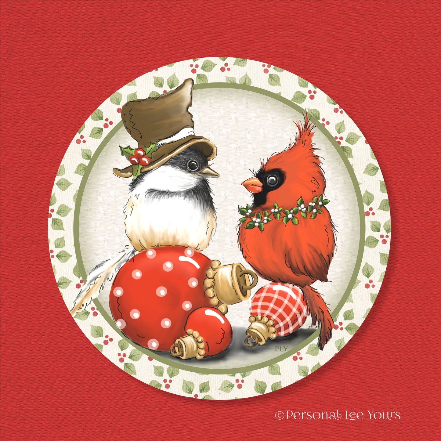 Holiday Wreath Sign * Chickadee And Cardinal * Round * Lightweight Metal