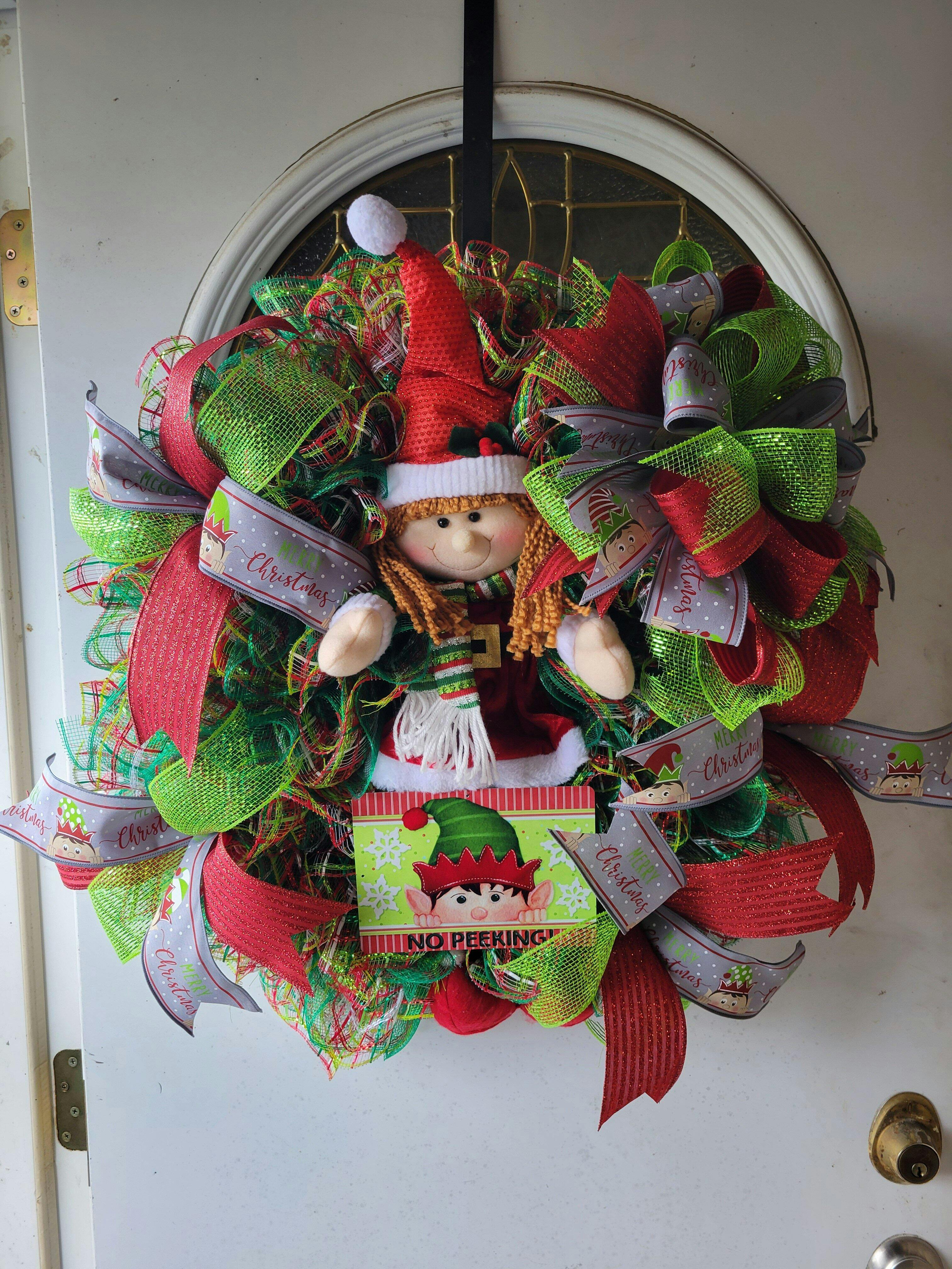 Holiday Wreath Sign * Christmas Elf * No Peeking * 3 Sizes * Lightweight Metal