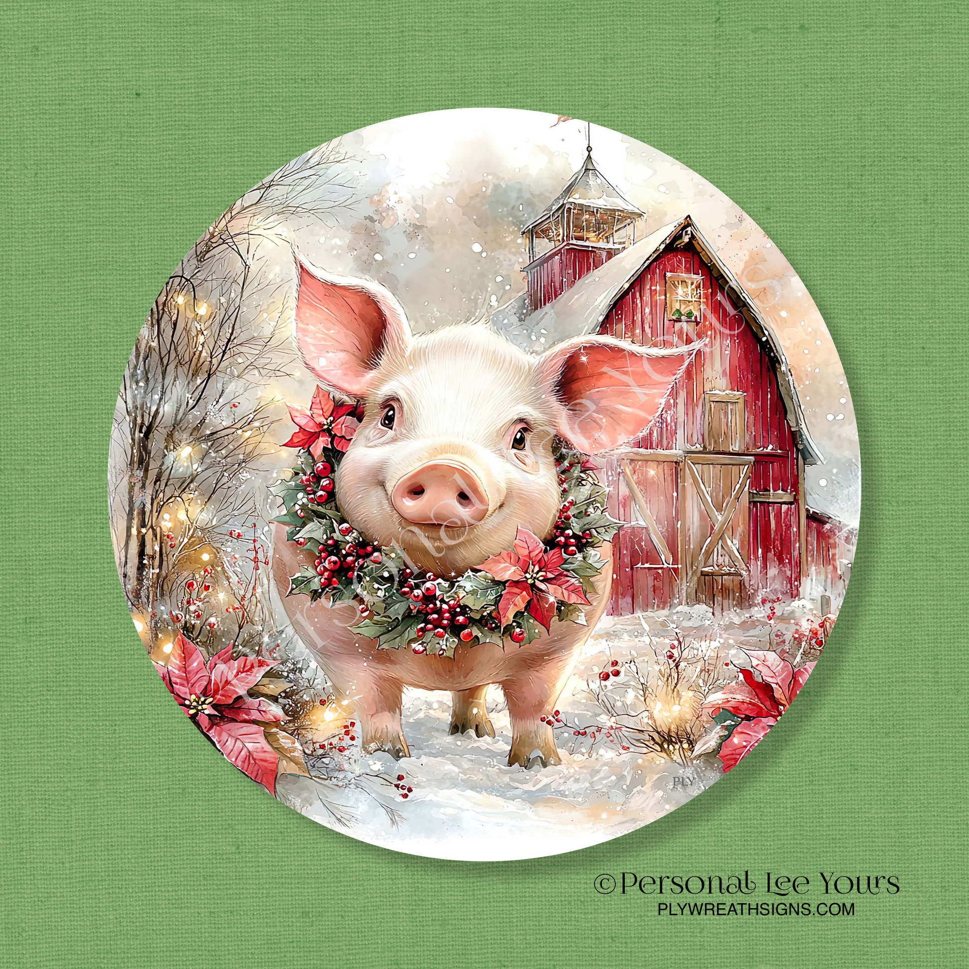 Holiday Wreath Sign * Christmas Pig * Round * Lightweight Metal