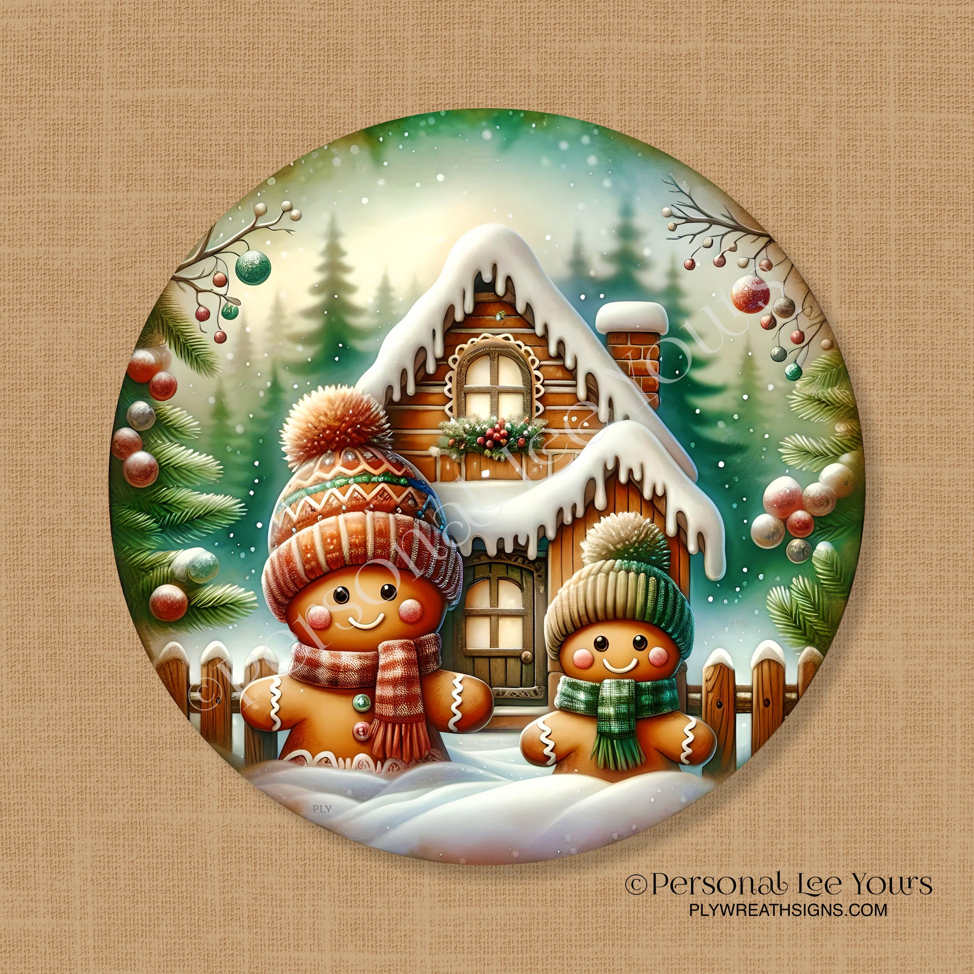 Holiday Wreath Sign * Christmas, Red and Green Gingerbread * Round * Lightweight Metal