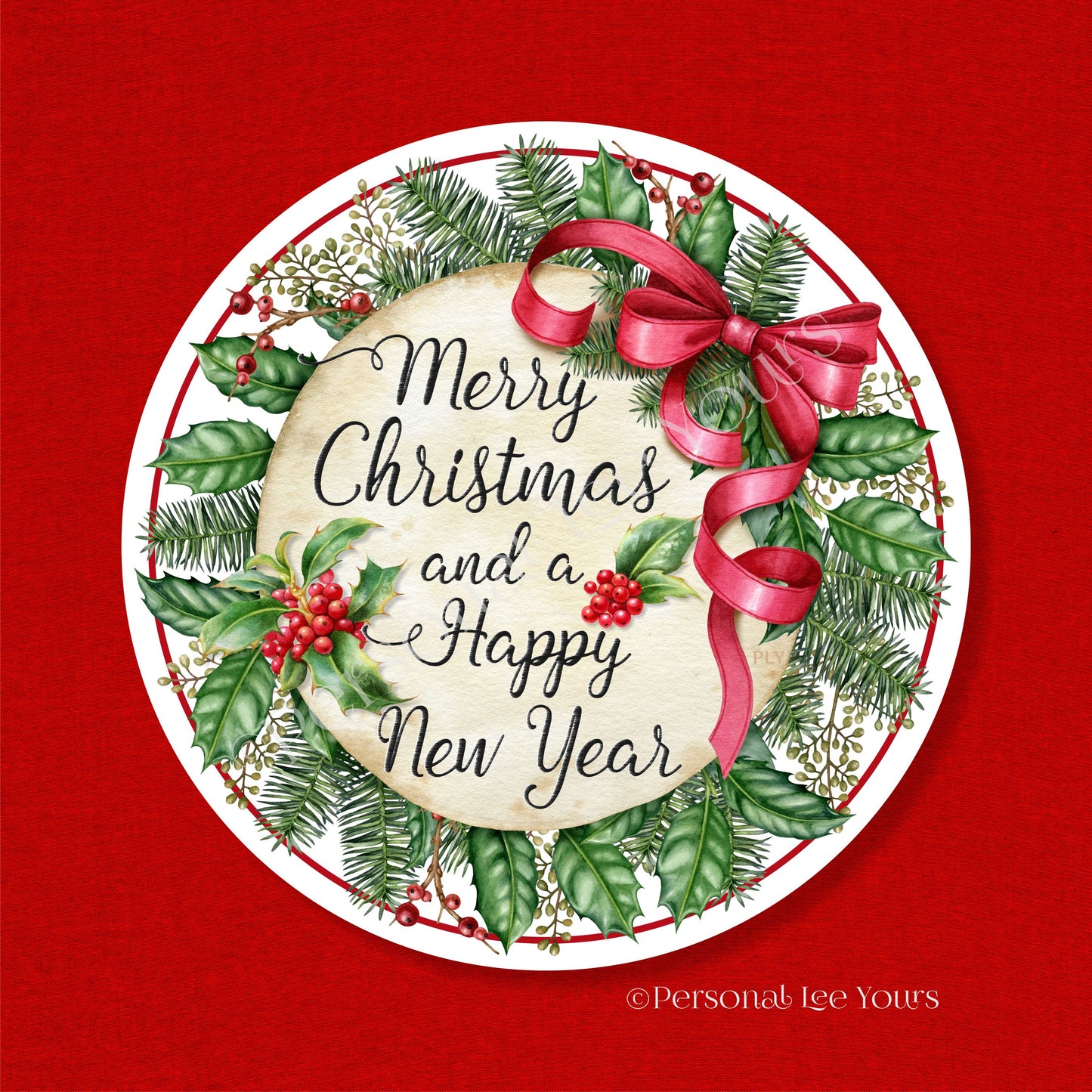 Holiday Wreath Sign * Merry Christmas and a Happy New Year * Round * Lightweight Metal