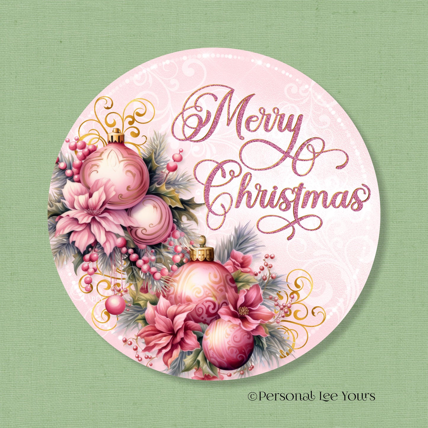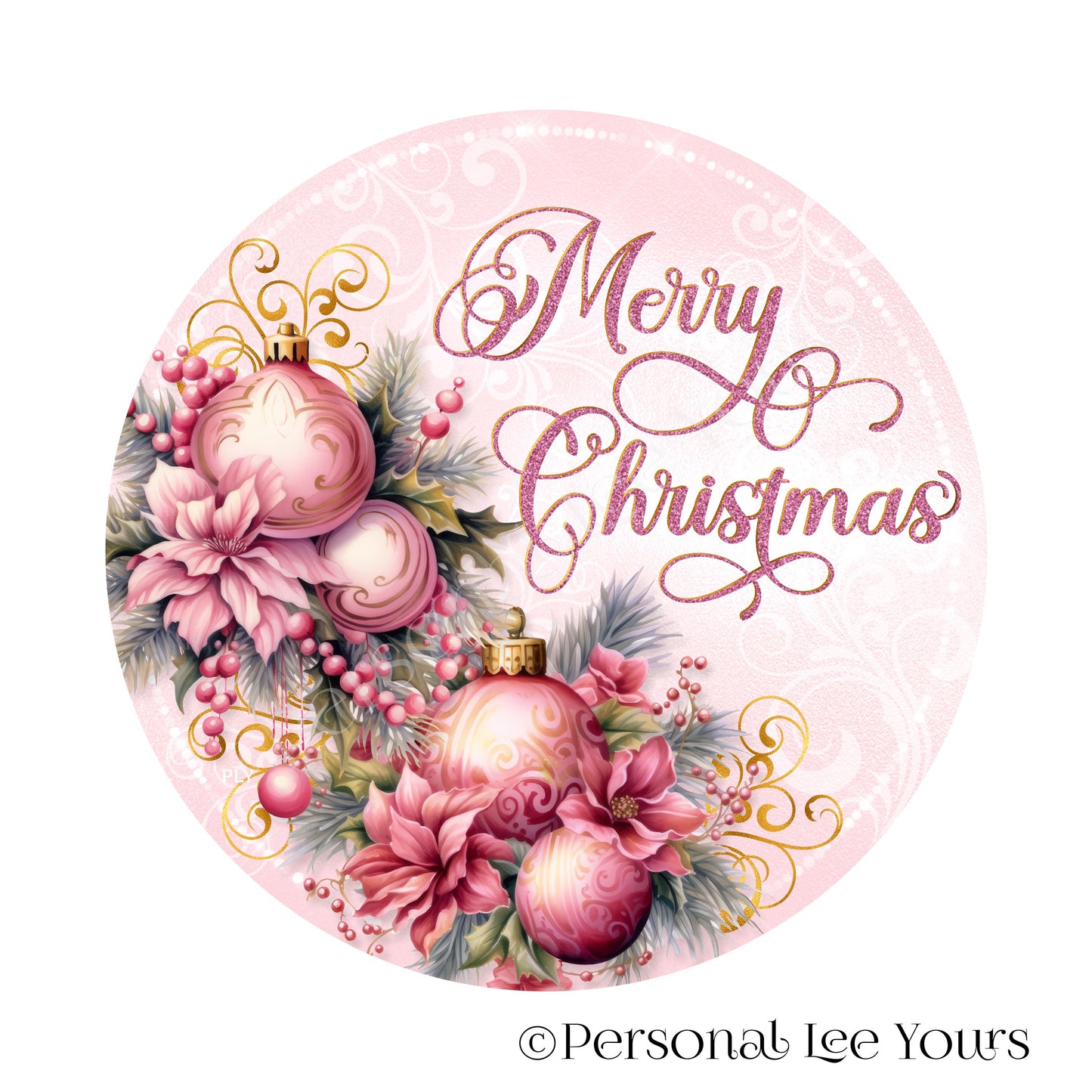 Holiday Wreath Sign * Merry Christmas In Pink * Round * Lightweight Metal