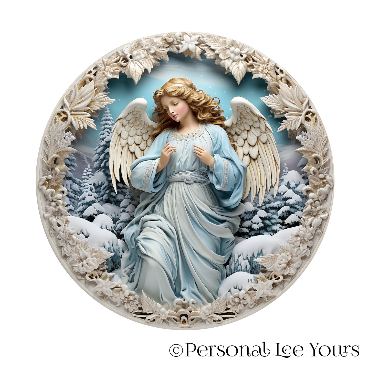 Holiday Wreath Sign * The Christmas Angel * Round * Lightweight Metal