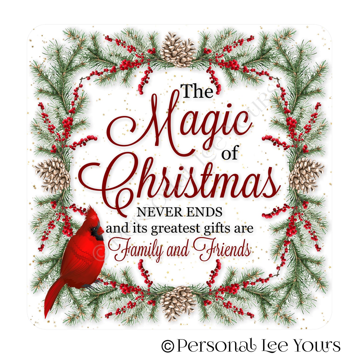 Holiday Wreath Sign * The Magic of Christmas Cardinal * Family and Friends * 3 Sizes * Lightweight Metal