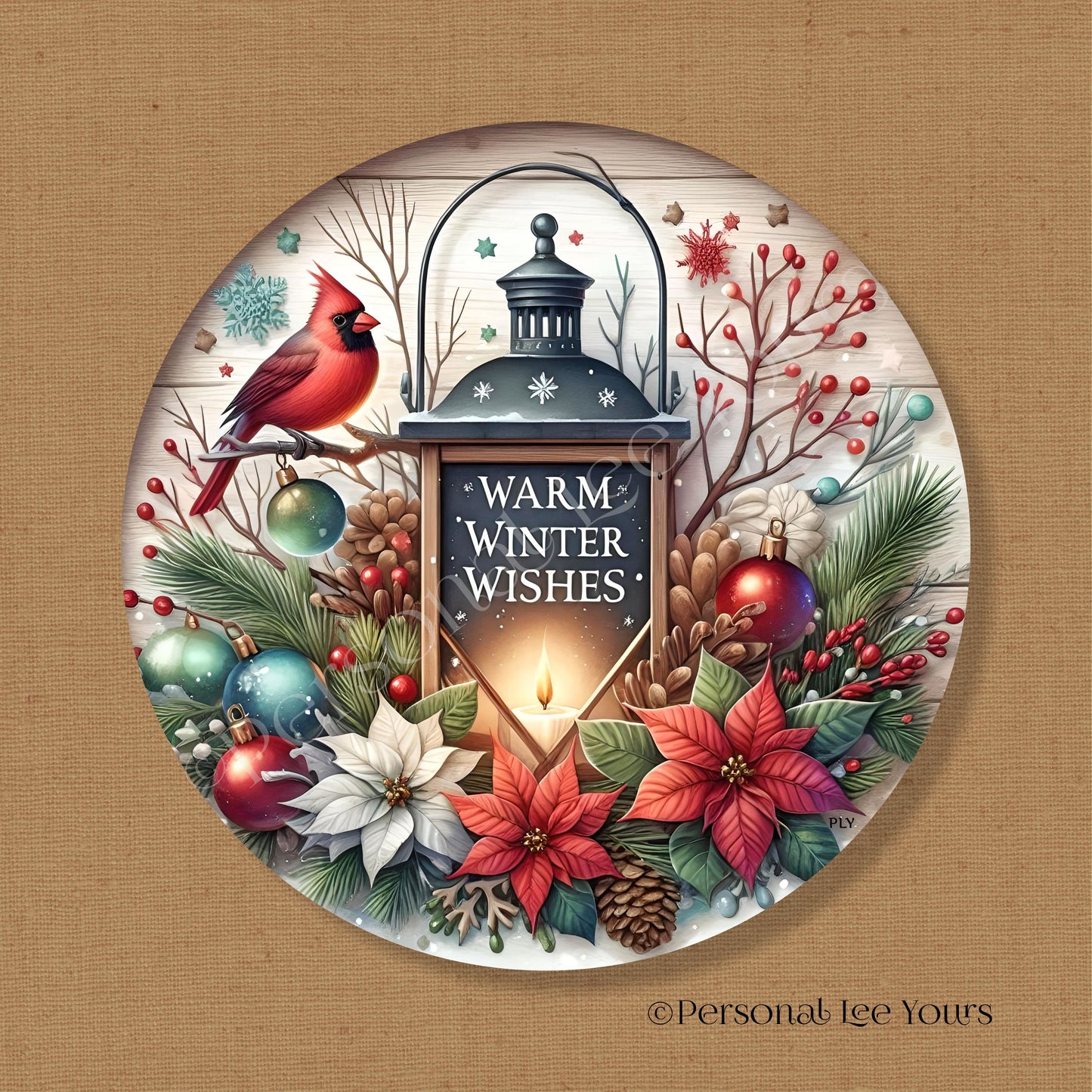 Holiday Wreath Sign * Warm Winter Wishes * Cardinal * Round * Lightweight Metal