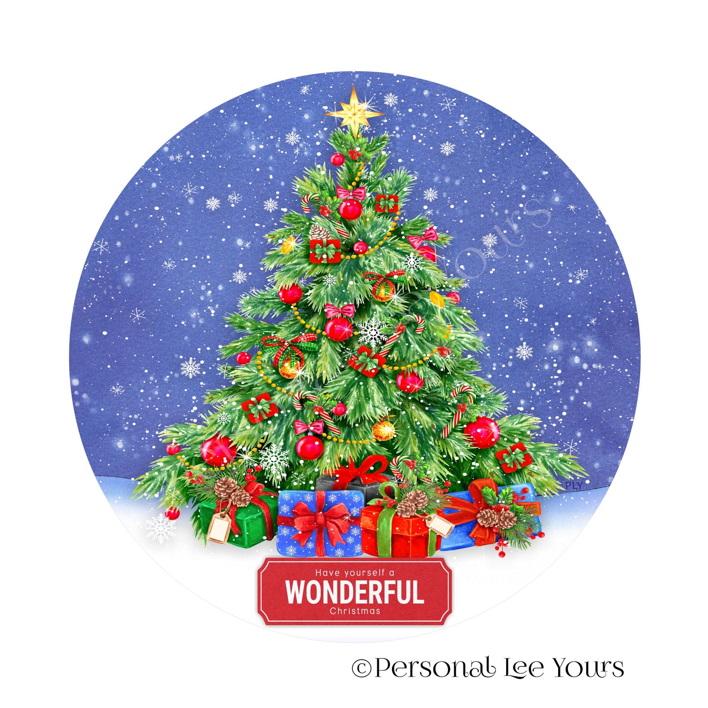 Holiday Wreath Sign * Wonderful Christmas * Round * Lightweight Metal