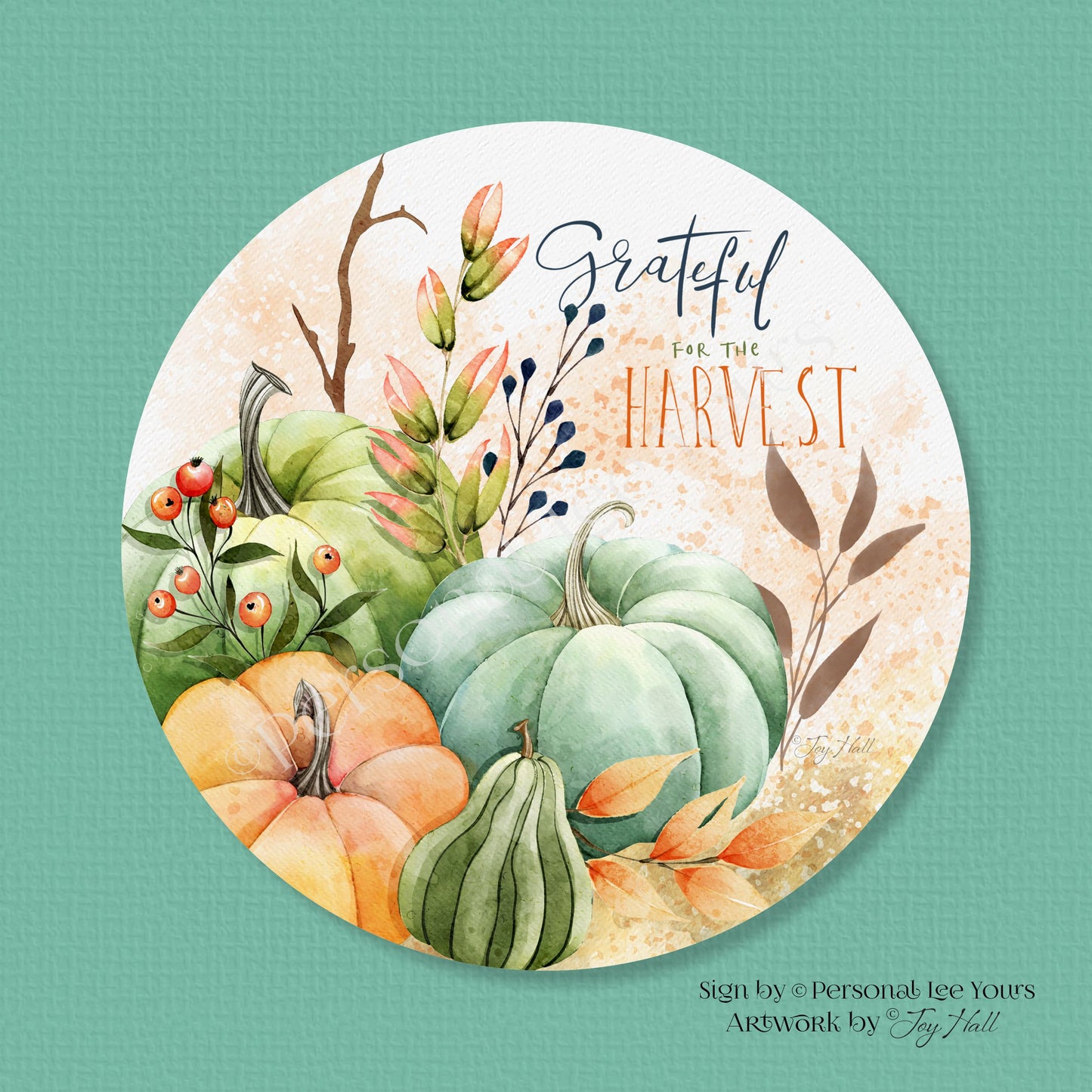 Joy Hall Exclusive Sign * Grateful For The Harvest * 8" and 10" Round * Lightweight Metal