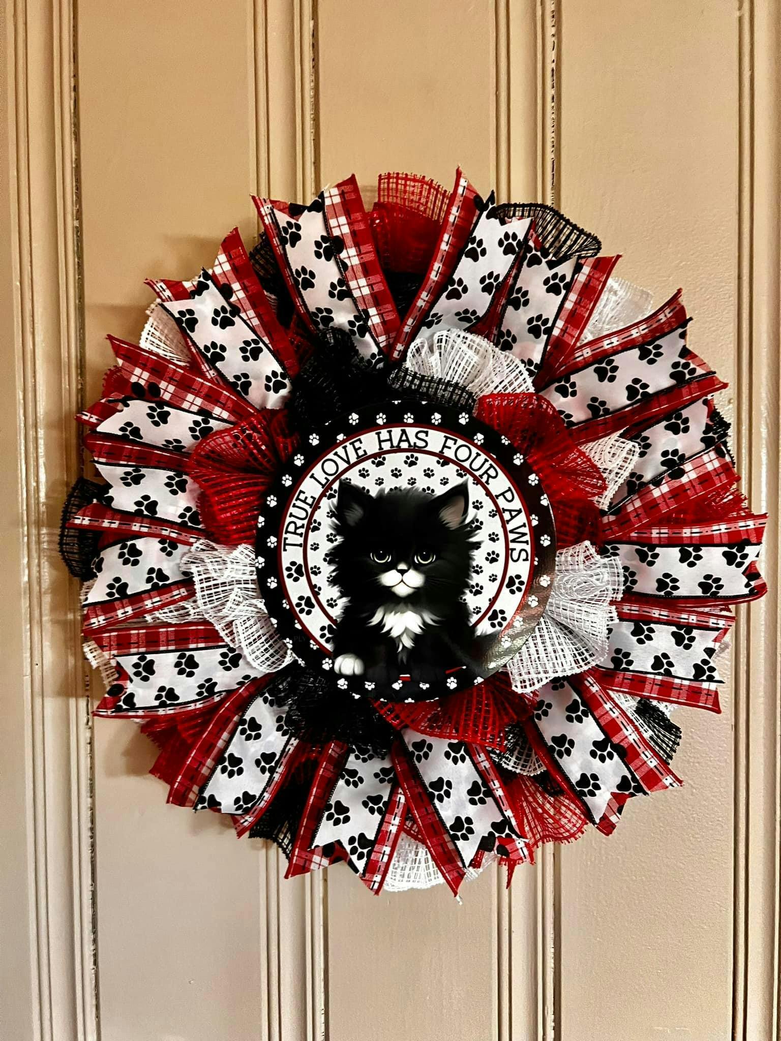 Kitten Wreath Sign * Angora * True Love Has Four Paws * Round * Lightweight Metal