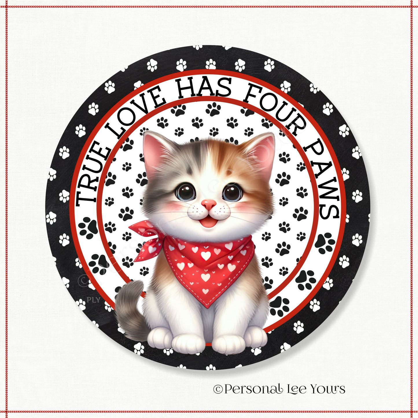 Kitten Wreath Sign * Turkish Van * True Love Has Four Paws * Round * Lightweight Metal