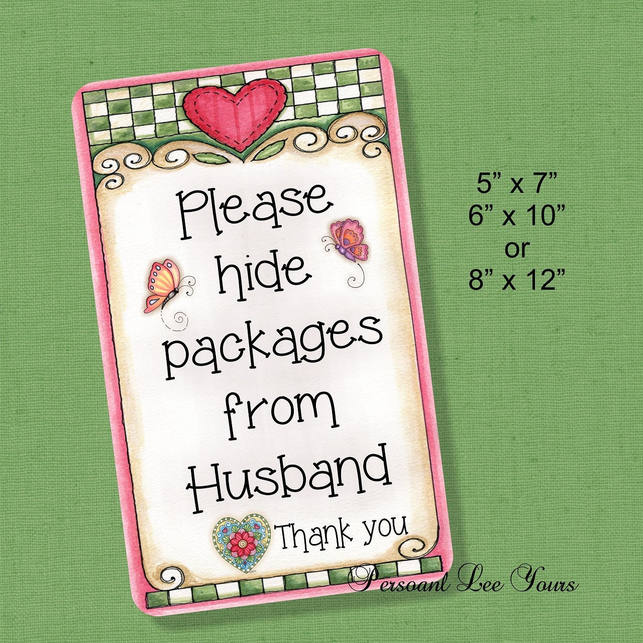 Metal Wreath Sign * Please Hide Packages From Husband * 3 Sizes * Lightweight