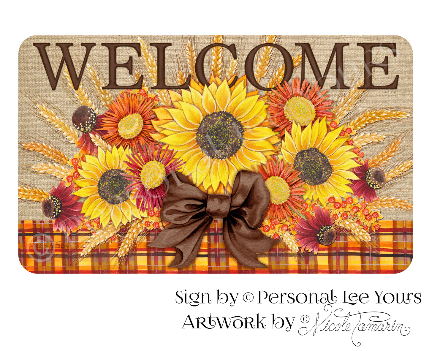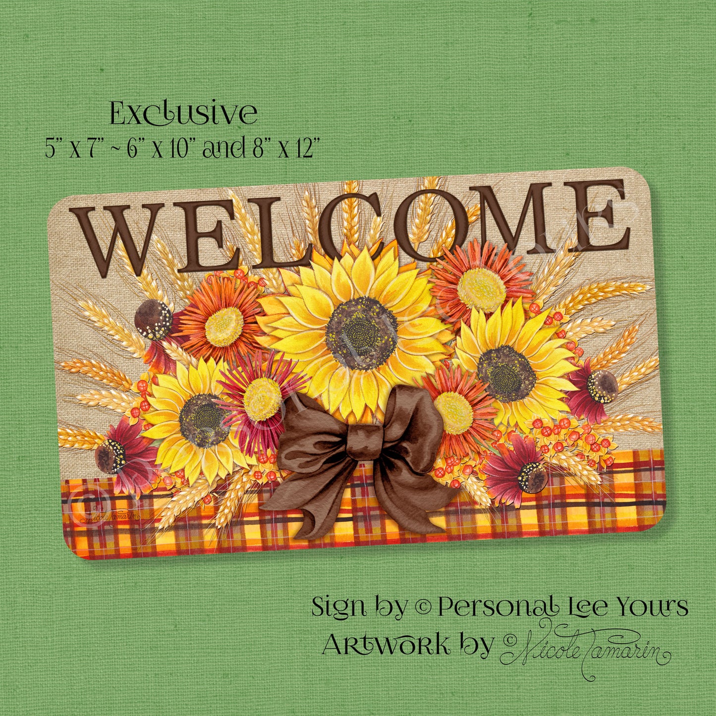 Nicole Tamarin Exclusive Sign * Autumn Sunflowers Welcome * Horizontal * 3 Sizes * Lightweight Metal