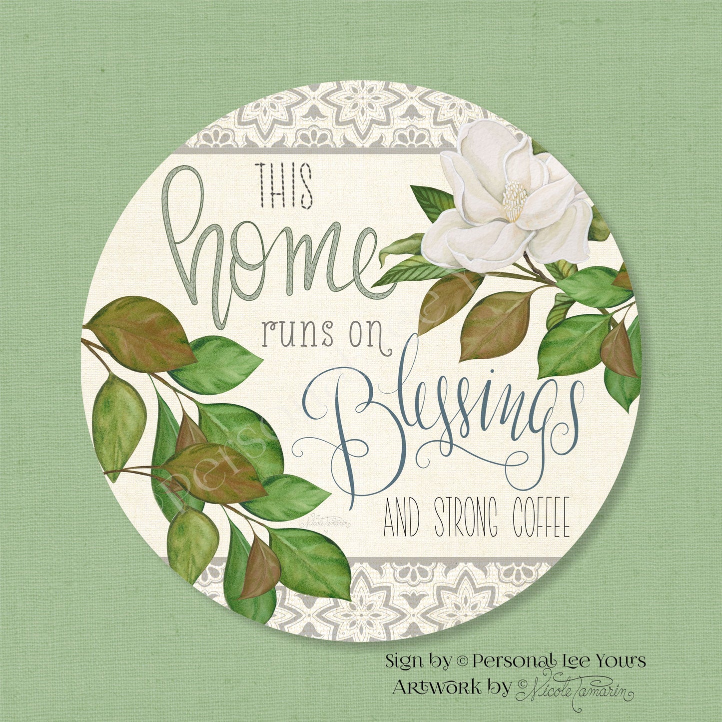 Nicole Tamarin Exclusive Sign * Blessings And Strong Coffee * Round * Lightweight Metal