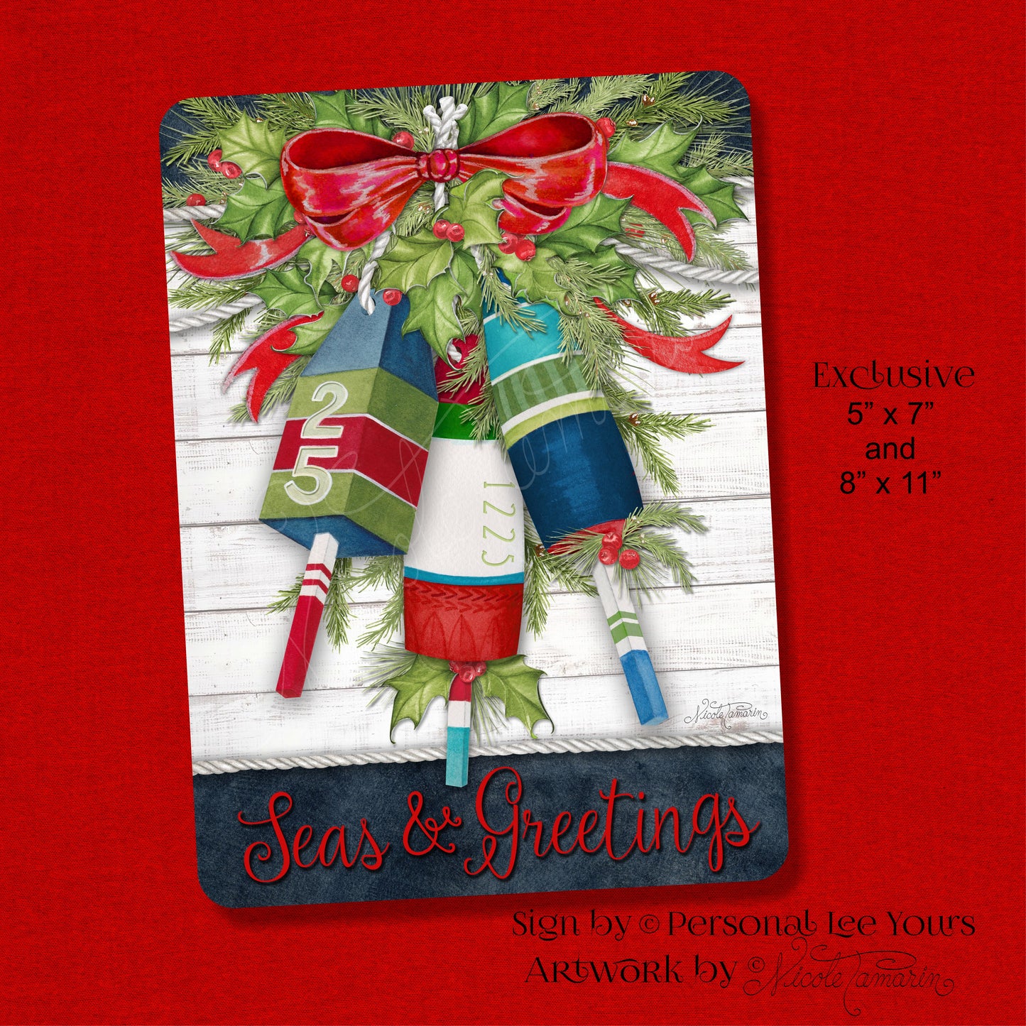 Nicole Tamarin Exclusive Sign * Christmas Buoys * Seas & Greetings * 2 Sizes * Lightweight Metal