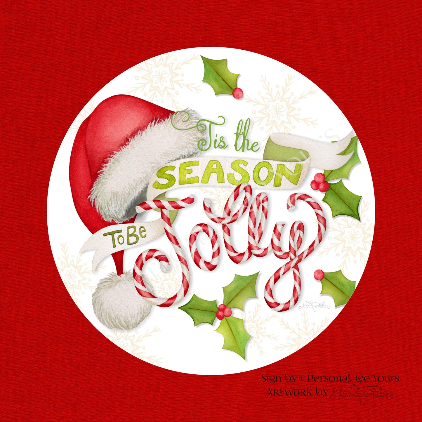 Nicole Tamarin Exclusive Sign * Tis The Season To Be Jolly, White * Round * Lightweight Metal