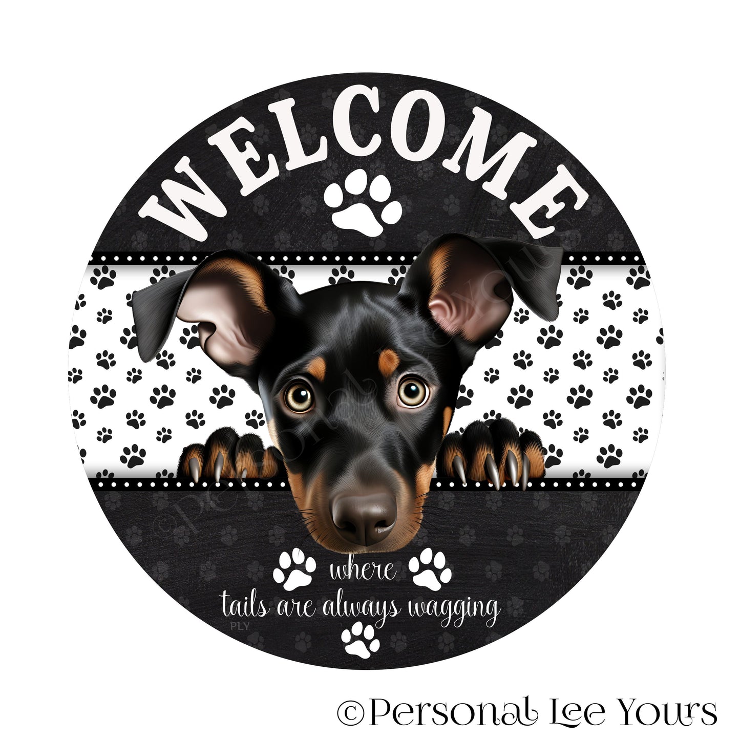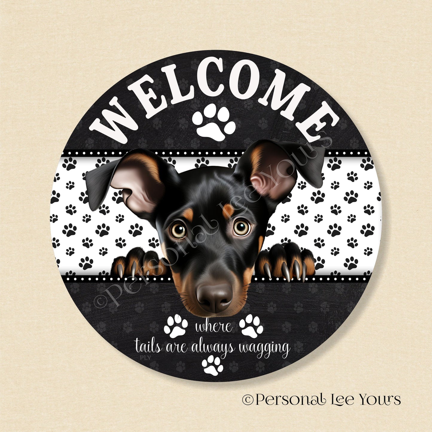 Peeking Pups Wreath Sign * Doberman Pinscher * Round * Lightweight Metal