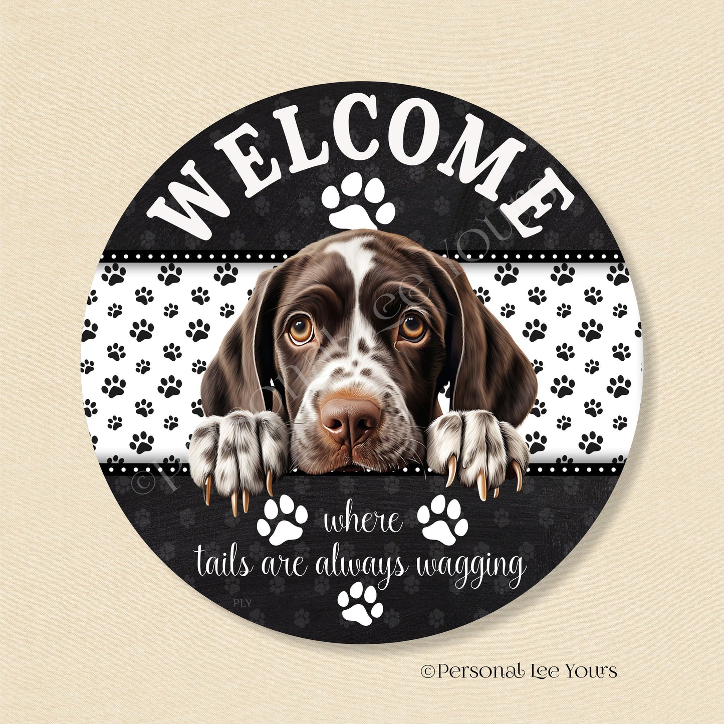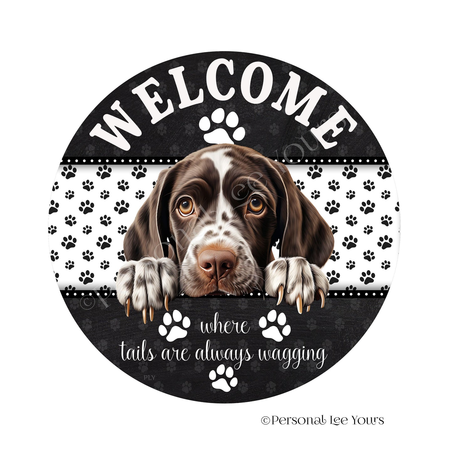 Peeking Pups Wreath Sign * German Shorthaired Pointer * Round * Lightweight Metal
