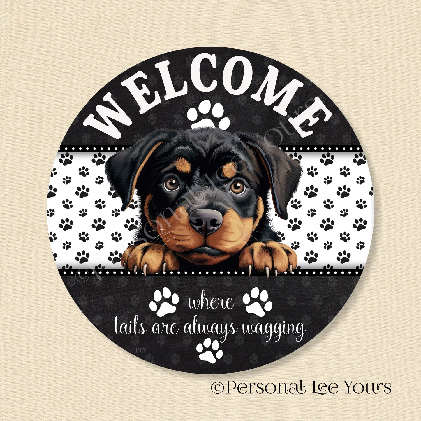 Peeking Pups Wreath Sign * Rottweiler * Round * Lightweight Metal