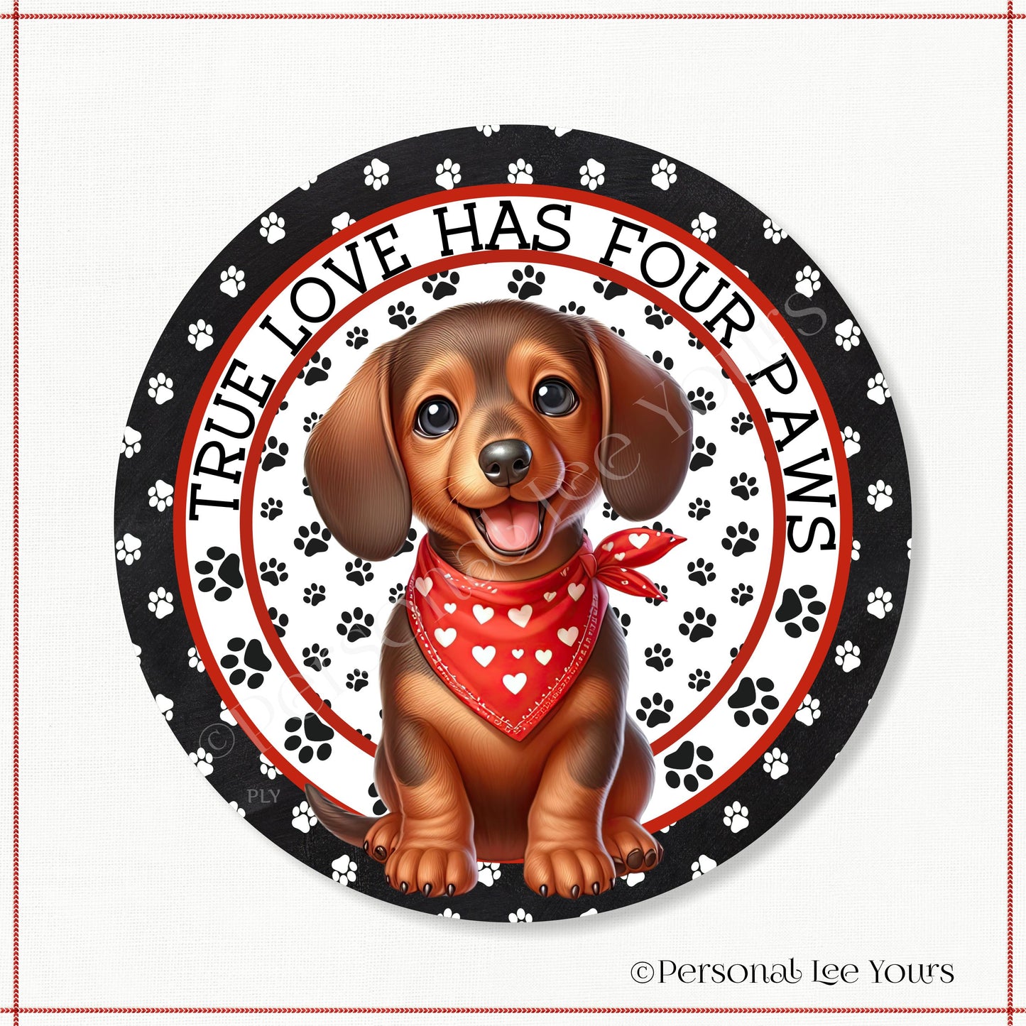 Puppy Wreath Sign * Dachshund * True Love Has Four Paws * Round * Lightweight Metal