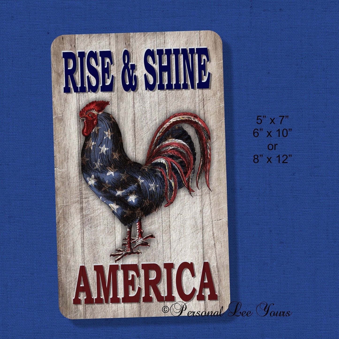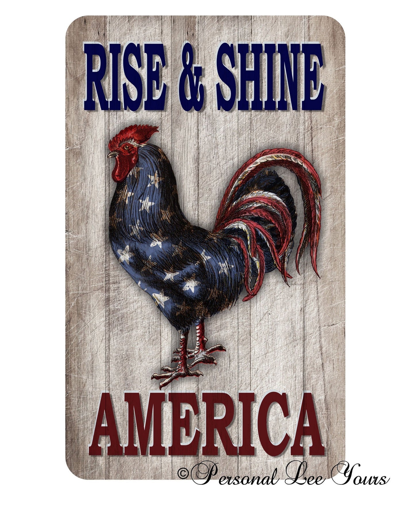 Rooster Wreath Sign * Rise & Shine America * 3 Sizes * Lightweight Metal