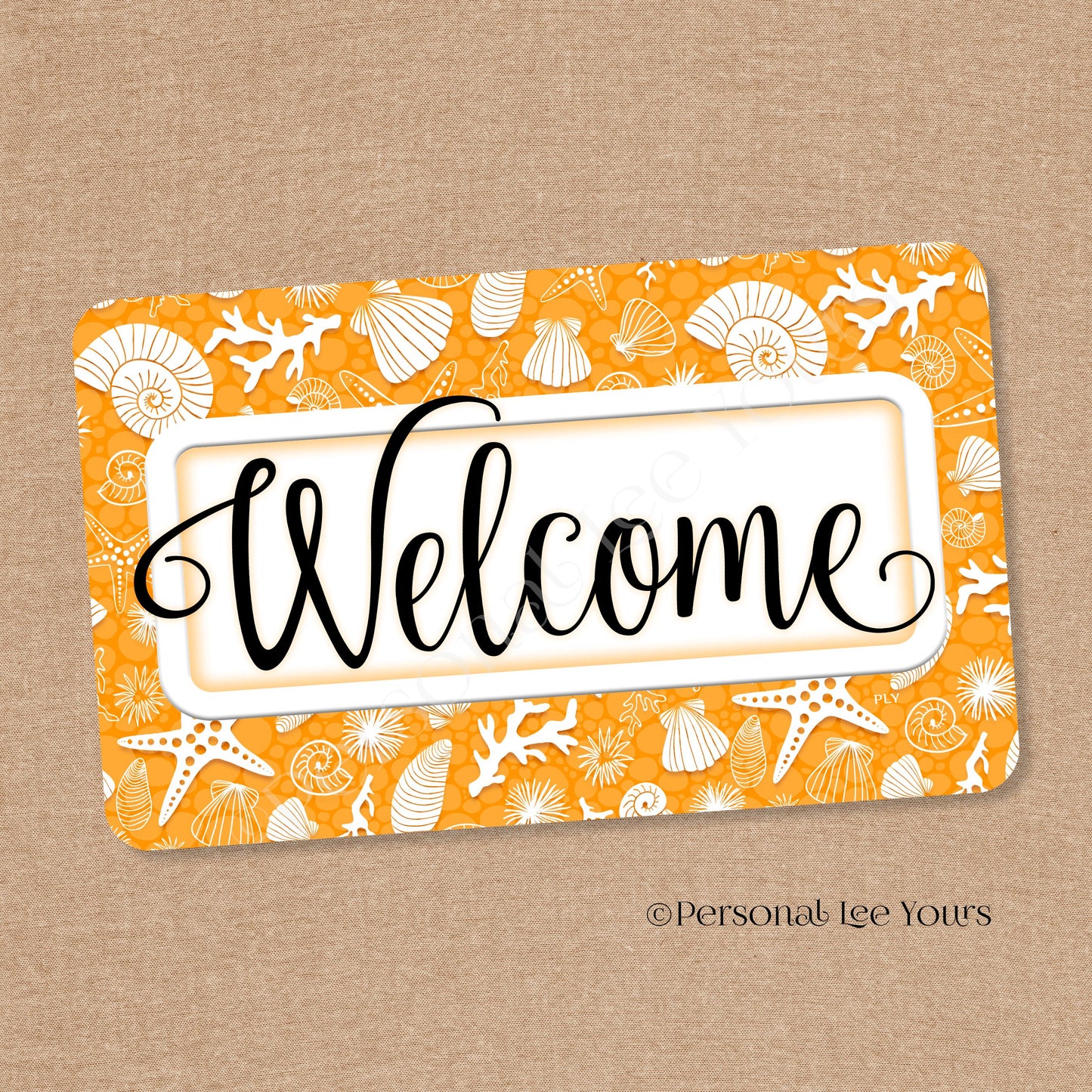 Simple Welcome Wreath Sign * Coastal Orange and White * Horizontal * Lightweight Metal