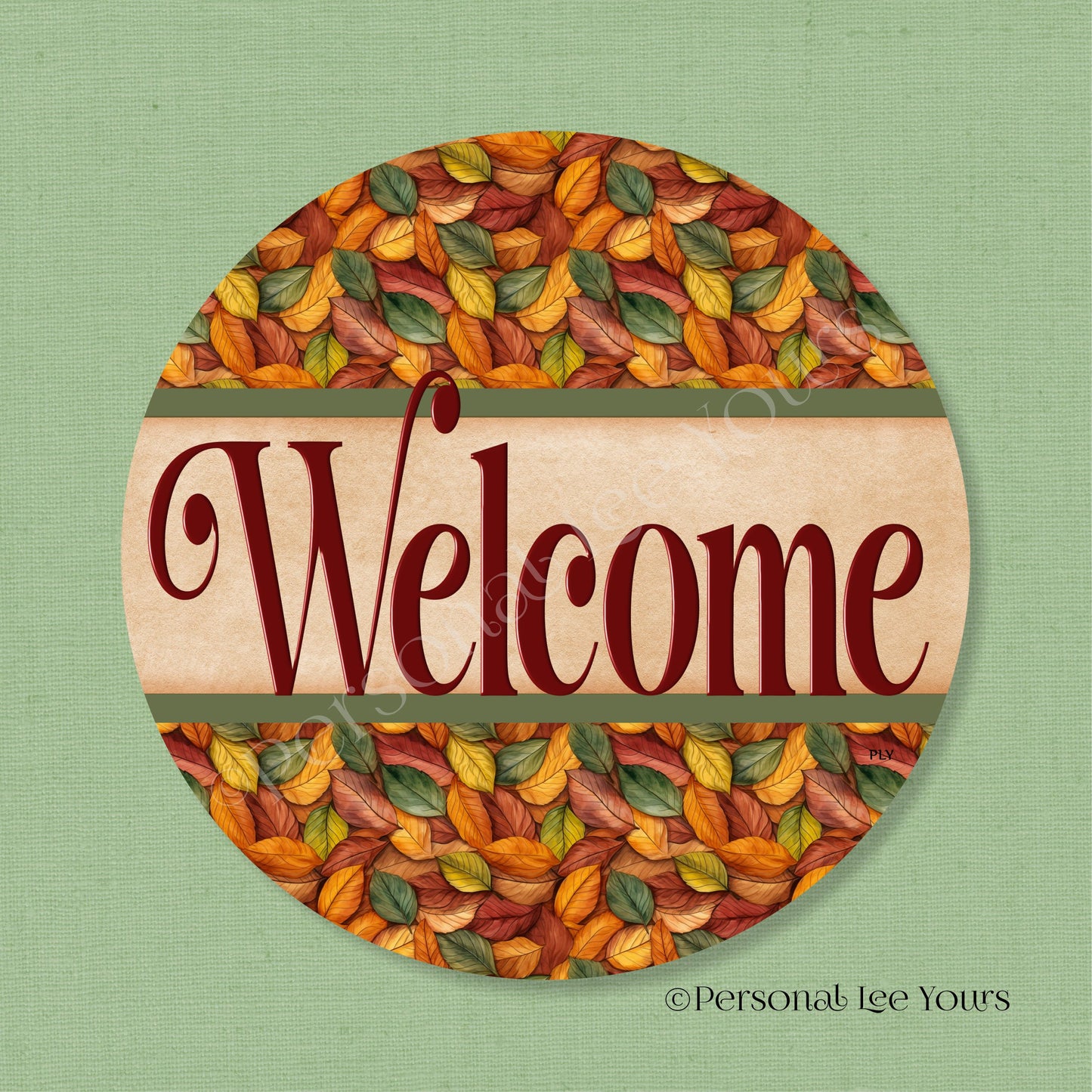 Simple Welcome Wreath Sign * Fall Leaves * Round * Lightweight Metal