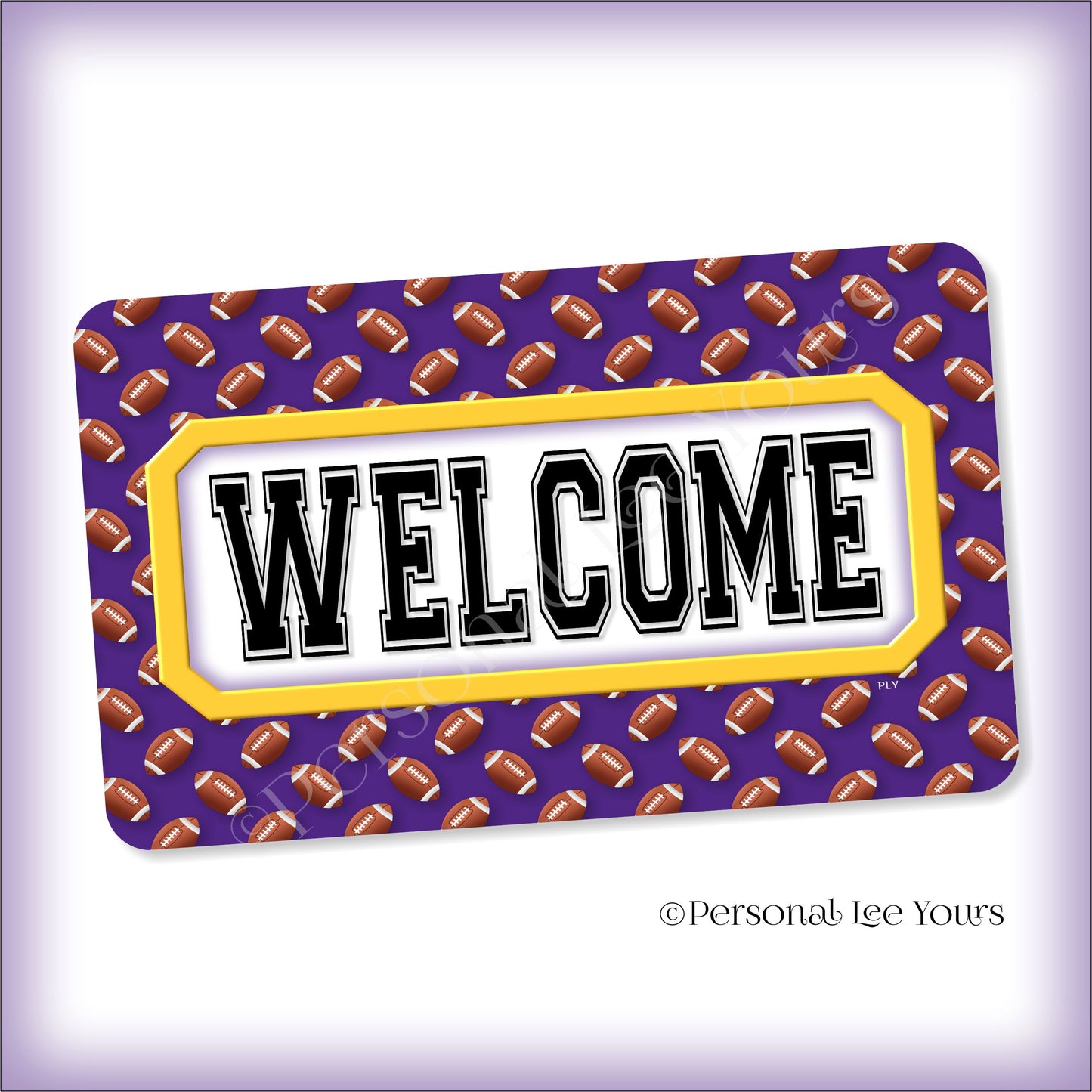 Simple Welcome Wreath Sign * Football, Minnesota Purple and Gold * Horizontal * Lightweight Metal