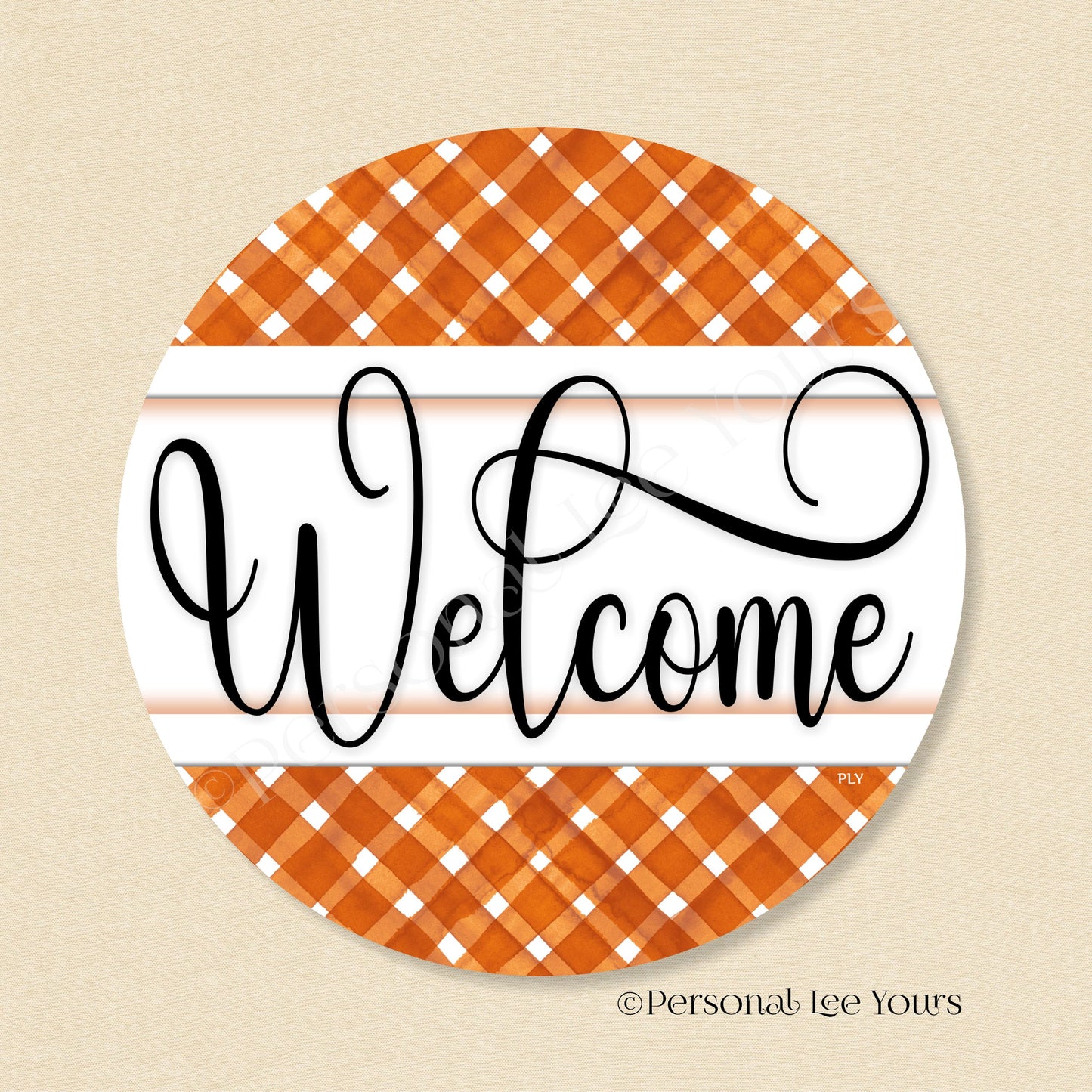 Simple Welcome Wreath Sign * Gingham Welcome * Rust/White * Round * Lightweight Metal