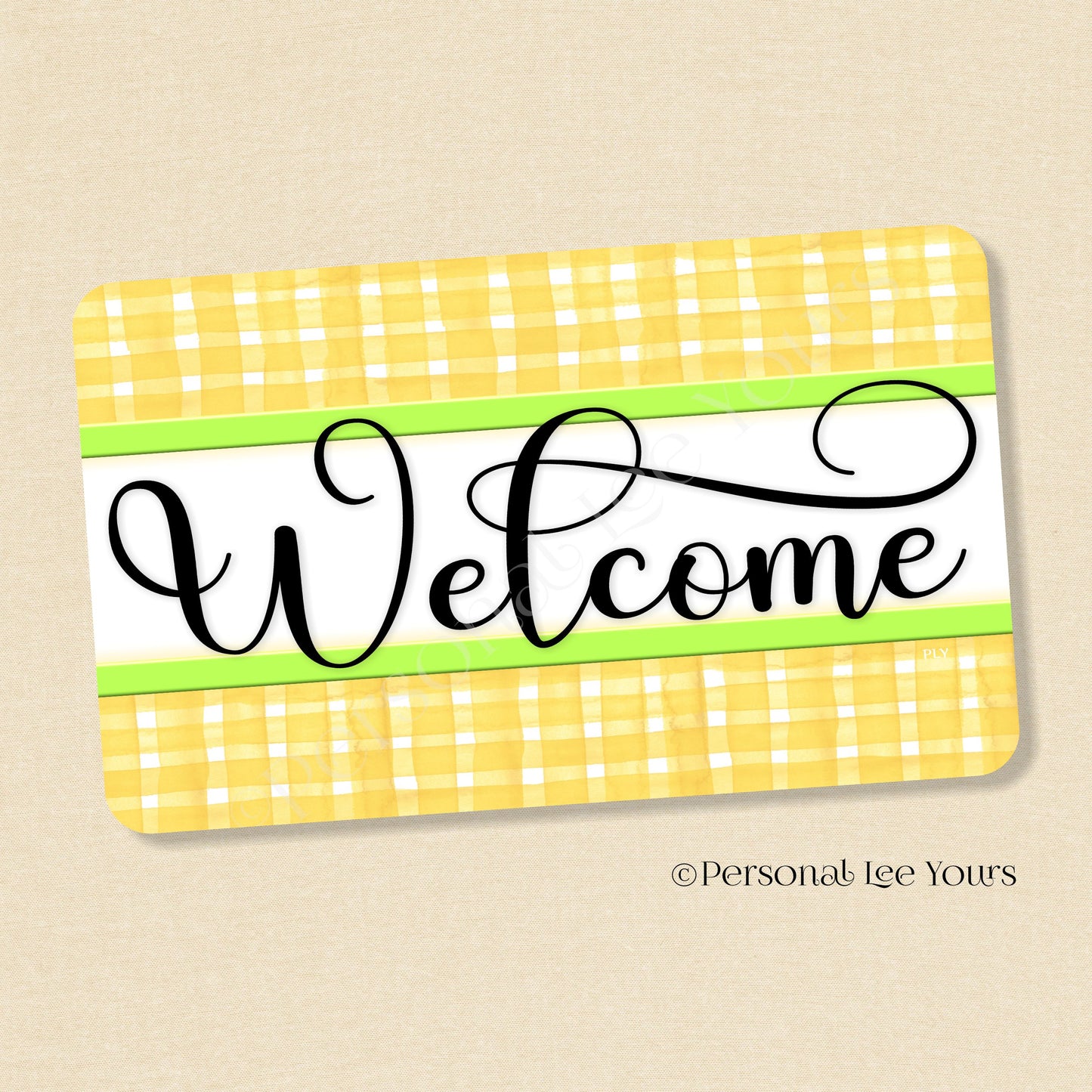 Simple Welcome Wreath Sign * Gingham Welcome * Yellow/Lime * Horizontal * Lightweight Metal