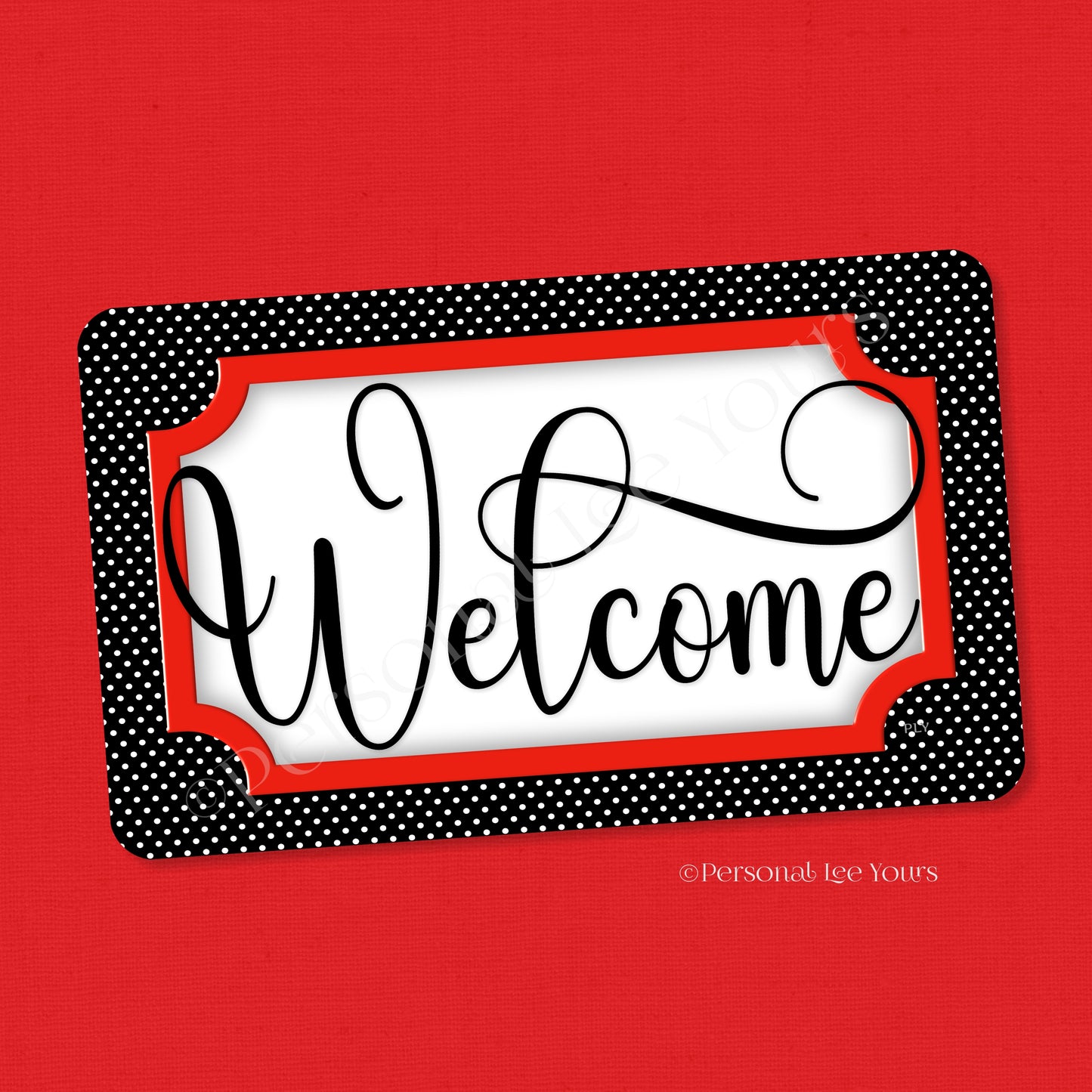 Simple Welcome Wreath Sign * Polka Dot, Black and Red * Horizontal * Lightweight Metal